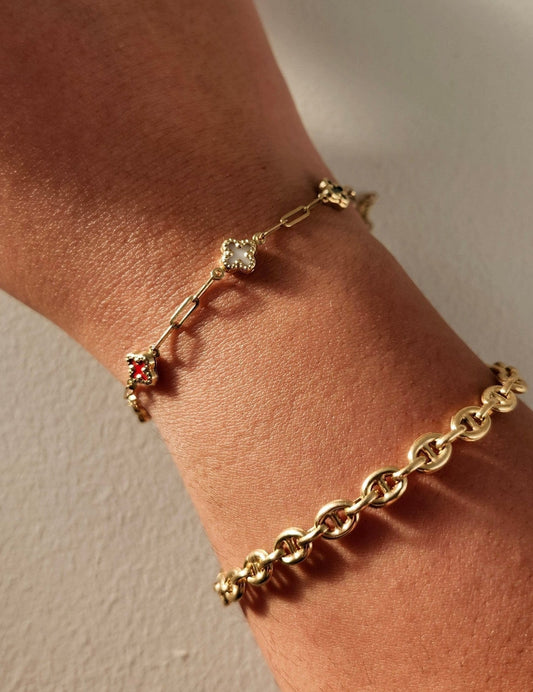 Our distinctive 10K Yellow Gold Link Bracelet features an eye-catching chain design that stands out from the traditional styles. Its elegant look adds a refined touch to any outfit, making it perfect for those who appreciate a unique twist on classic gold jewelry. Whether worn solo or layered with other pieces, this bracelet brings a touch of sophistication to your everyday style or special occasions. A perfect choice for anyone looking to add a one-of-a-kind piece to their collection.